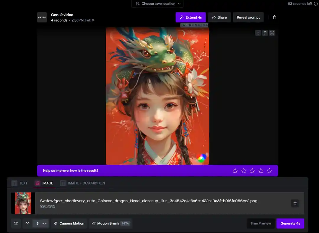 Gen2-Runway有少量免费生成次数,500积分,单次4s视频,每s消耗5积分;免费导出(带水印),可以通过不断注册新邮箱实现无限白嫖积分