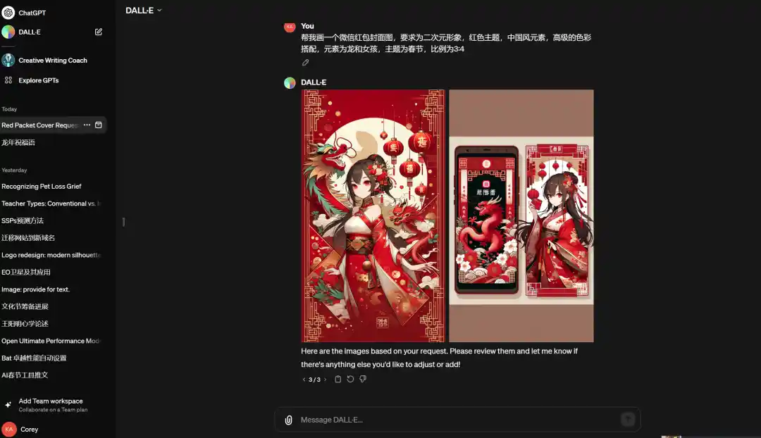3、一定的PS处理能力,遵循微信红包封面挂件的图像参数要求,进行图片的处理;红包封面官方比例为957×1278像素,不超过500KB,色彩空间配置建议使用sRGB,AI生图不支持固定比例可以直接使用3:4生成