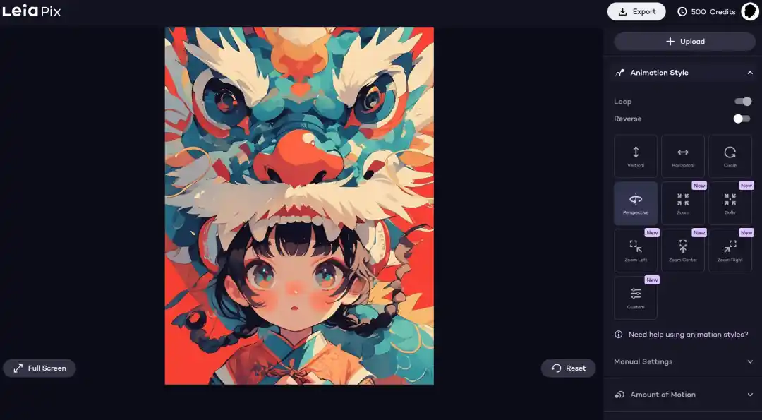 Leiapix适合简单的2D转3D,不改变原图内容,效果一般,带水印下载,不过可以通过录屏方式录制无水印视频,500积分次数用于下载,带水印低画质下载不消耗积分