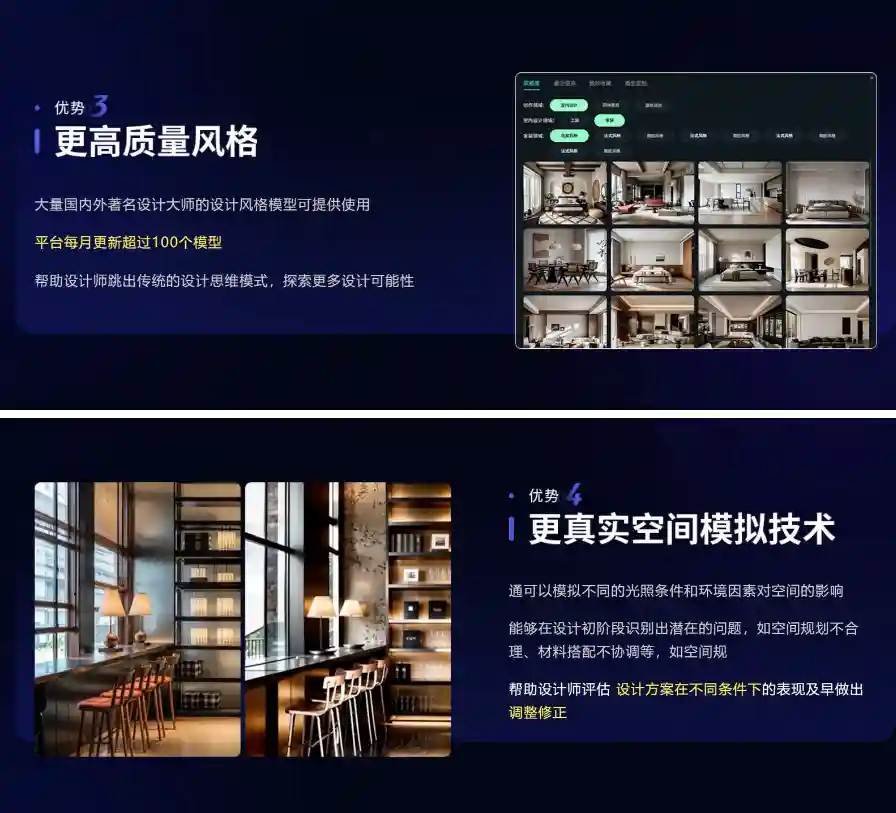 不仅协助设计师设计方案的灵感创作,更可以帮助设计师节省谈单前期所付出的精力成本,以及与客户之间的沟通成本