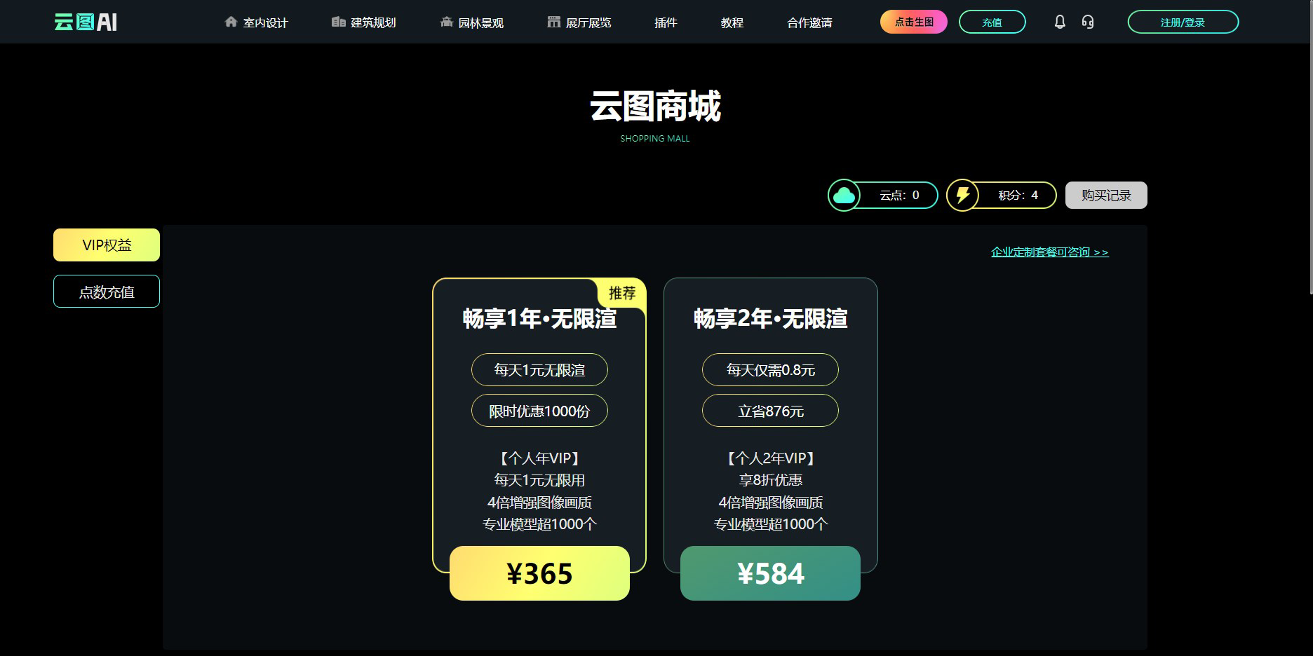 如积分使用完毕想继续使用,则需要充值或购买VIP权限,亦或者定制企业专属套餐