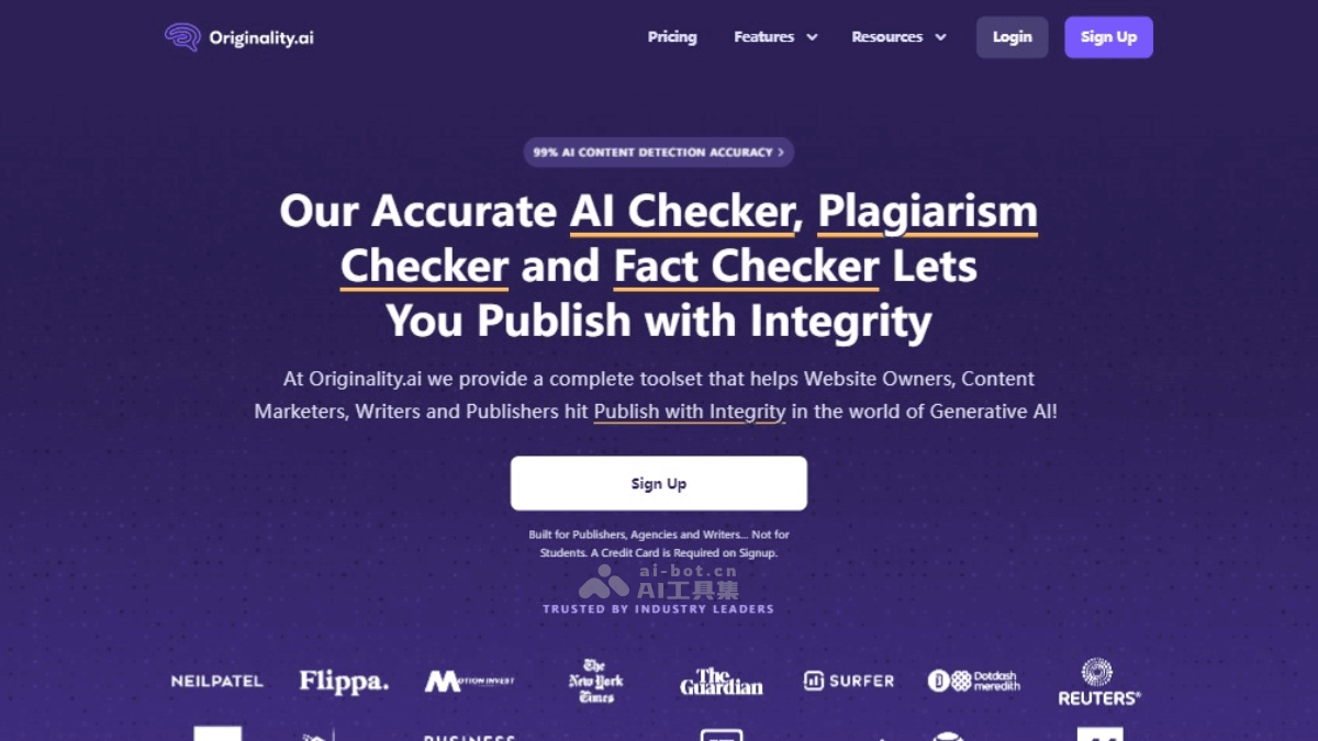 - 网络出版商:用 Originality.AI 确保内容是原创且无抄袭,检测 AI 生成或抄袭的内容保护网站免受搜索引擎更新的影响。